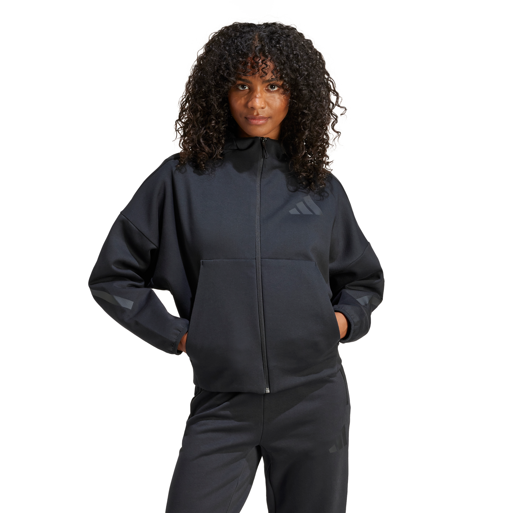 This adidas hoodie celebrates the community we find through sport. The soft three-layer adidas PRIMEKNIT fabric lends lightweight warmth and a soft feel, while the roomy hood adds extra coverage. Matte rubber-print graphics represent the lines that bring us together on the field of play. Zip it all the way up to block the breeze on cool days, or leave it open to show off your favourite team shirt beneath. When the game is about to start, stash your small essentials in the hidden zip pocket inside the kangaroo pocket and head out.By choosing recycled, we are able to reuse materials that have already been created, which helps to reduce waste. Renewable materials choices will help us to remove our reliance on finite resources. Our products made with a blend of recycled and renewable materials feature at least 70% total of these materials.